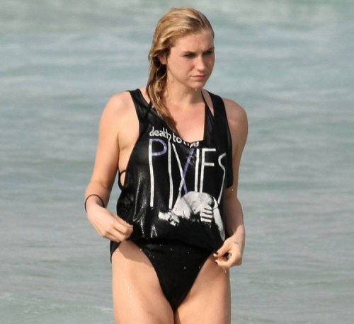 Ke$ha est toujours à Bondi Beach Publié le 25 mars 2010 par punisher Publié dans Kesha Ke$ha a du avoir vent de certaines photos de nos amis les paparazis, puisqu’elle a enfilé un tshirt au dessus de son joli monokini noir!