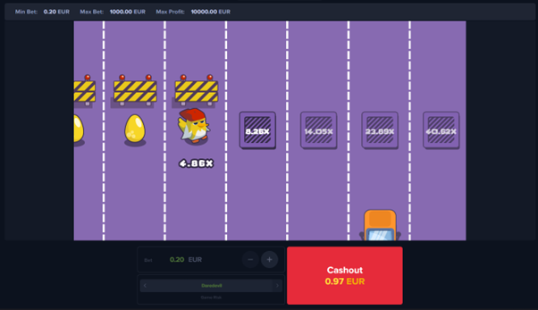 Pour commencer à jouer à Chicken Cross, il vous suffit de vous rendre sur le site de MyStake Casino, de créer un compte et de réclamer votre bonus de bienvenue. Une fois connecté, accédez au mini-jeu dans l’onglet « Mini-jeux » du site. Choisissez votre mise, sélectionnez un niveau de risque et guidez votre poulet à travers l’autoroute. Avec des mises variées et différents niveaux de risque, Chicken Cross offre aux joueurs la possibilité de personnaliser leur expérience de jeu selon leurs préférences.
