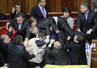 Scène incroyable au parlement ukrainien Publié le 27 avril 2010 par punisher Publié dans Actualité, International Hurlement, sirène, bagarre, fumigènes et jets d’oeufs tout y passe au parlement ukrainienDécouvrez la vidéo choc!